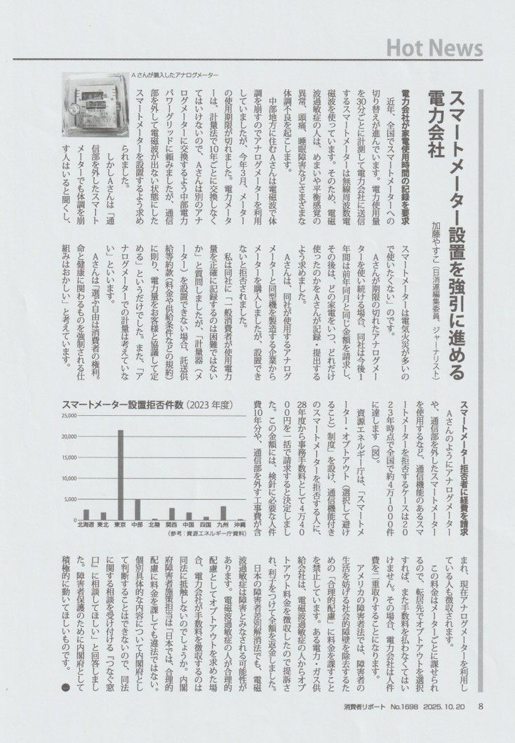 日本消費者連盟の機関紙「消費者リポート」10月号で、